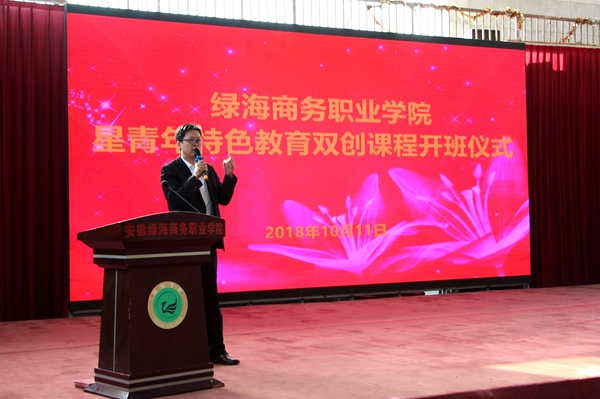 10月11日下午,华体会vip隆重举行星青年特色教育双创课程开班仪式,学院董事长、党委书记、星青年培训中心总培训师陈孝云,副院长余敏,院长助理席清才,合肥荣事达集团双创大学校长吴俊成,上海3800教育集团代言人黄静逸,学院师生代表参加开班仪式。活动由学院党委副书记、纪委书记张以亭主持。