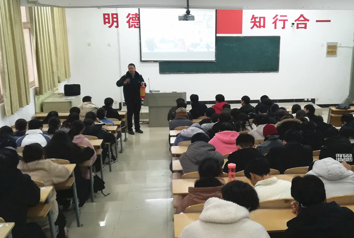 为进一步加强师生消防安全意识,落实冬季防火工作,提升消防“四个能力”建设,共建平安和谐校园。12月24日,学院邀请合肥政安防火中心来校联合开展消防安全知识培训活动。本次培训由刘凯教官主讲,保卫处处长程光胜主持,各系部百余名学生代表参加。