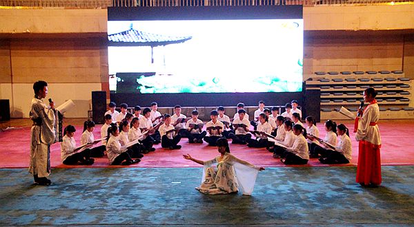 此次共有各系选派的6支代表队参赛,在精美画面的映衬下和悦耳动听的古乐的伴奏下,他们身着汉服、手捧经典,或吟、或诵、或舞、或演、或奏、或唱,将国学经典诗文演绎得意境唯美、韵味深长,呈现了一场经典文学的视听盛宴。