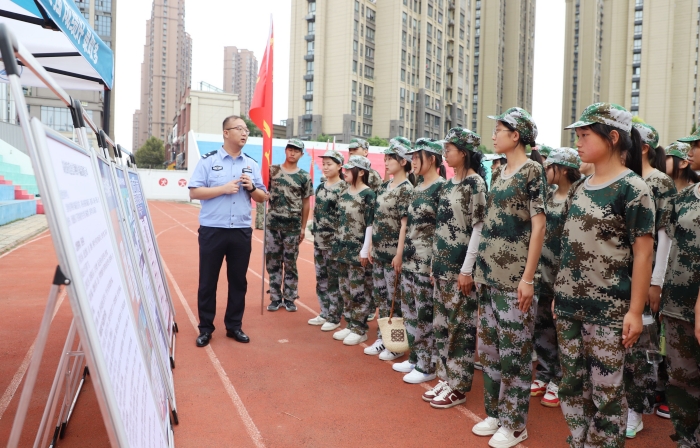 9月15日上午,华体会vip联合锦绣派出所、锦绣社区、桃源居委会在校田径场开展2023年秋季“开学第一课”反电诈宣传教育活动。常务副校长,董事会董事、总务处处长孙圣祥,锦绣派出所副所长黄岑,锦绣社区平安建设部部长芮斌,桃源居民区党总支书记张克权,校宣传部、学生处、保卫处负责人,各二级学院党支部书记,全体新生、辅导员参加活动。活动由保卫处处长雷成法主持。