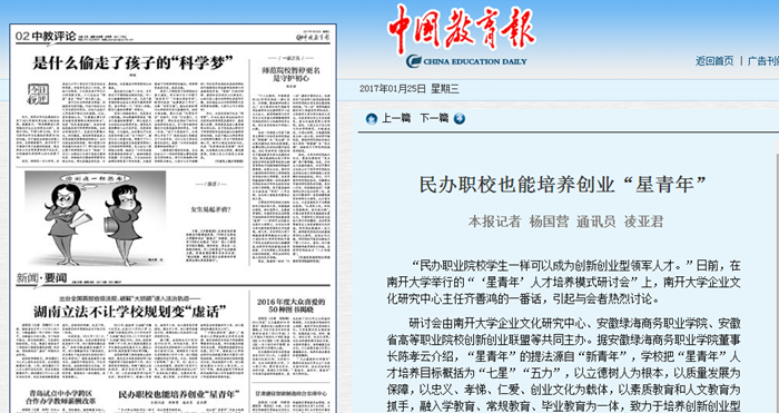 4.红色基因注入hth首页登录文化。“hth首页登录文化”是“三大文化”的具体实践,核心内涵是:绿色为本、红色铸魂、创业创新。“绿色为本”即秉持“海纳百川、经世致用”的校训,弘扬传统美德,坚定文化自信,坚持立德树人;“红色铸魂”即坚守塑造“爱国、担当、自强、闪光”星青年的办学使命,传承红色基因,赓续红色血脉,为党育人为国育才;“创业创新”即立足职业院校的职责使命,着力培养德才兼备、担当有为、堪称大用的有用之才。实施“十个一”工程,即讲好“一门课程”、建好“一个基地”、编好“一部教材”、打造“一支队伍”、开辟“一个阅读空间”、创办“一个主题影院”、举办“一些竞赛”、结成“一批对子”、办好“一个阵地”、建设“一个校园”。促进红色文化融入hth首页登录、扎根校园、入脑入心,引导广大师生筑牢历史记忆、增强历史自觉、坚定历史自信,在潜移默化中接受政治教育、思想淬炼、精神洗礼。